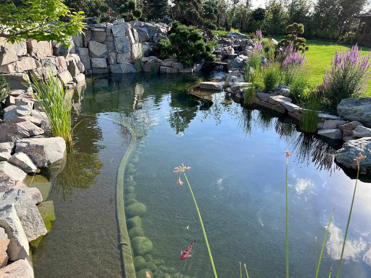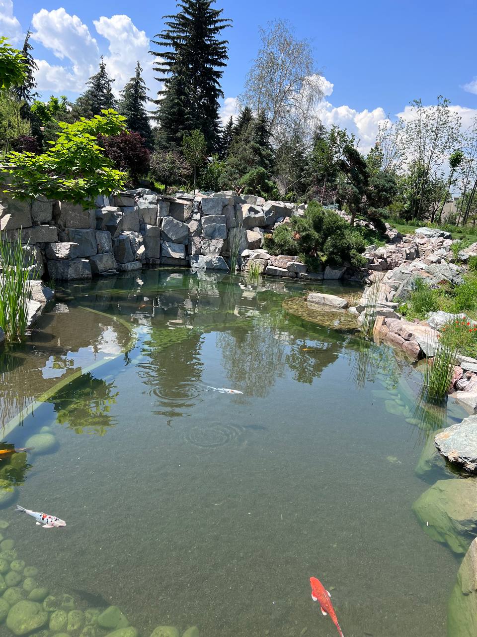 • Кои + натуральное оформление камнем