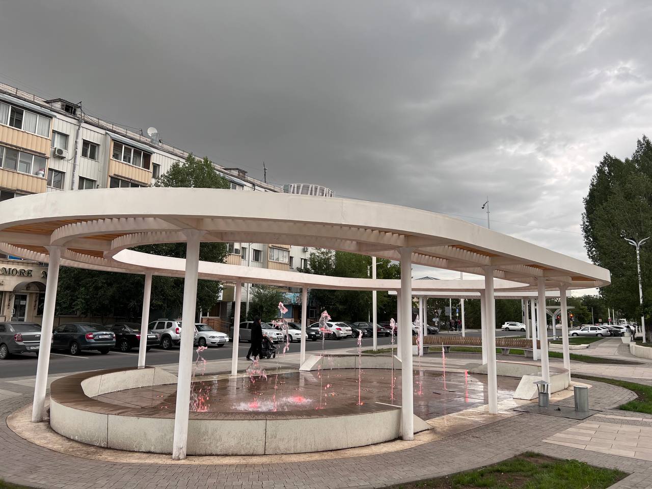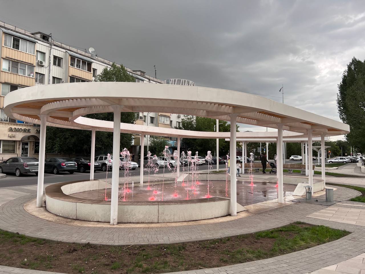 Фонтаны построены совместно с нашими партнёрами Fluidra Kazakhstan. Наша компания выполняла монтаж оборудования: насосы, форсунки, автоматика.